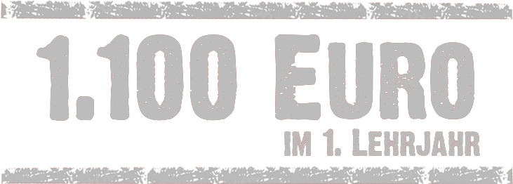 Wir zahlen über Tarif! Bereits im 1. Ausbildungsjahr erhältst du schon 1100,00 EUR.
