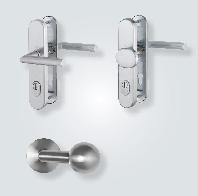 - Wechselgarnituren: Diese speziellen Griffe haben innen einen Türdrücker und außen einen festen Knauf oder eine Stange. Sie eignen sich besonders für Haustüren. Der Knauf verhindert das Öffnen der nicht abgeschlossenen