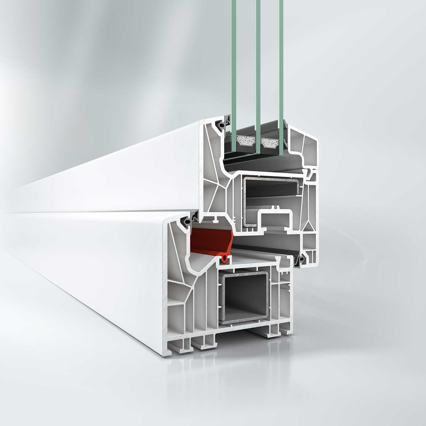 - Kunststoff-Fenstersystem mit einer Bautiefe von 82 mm