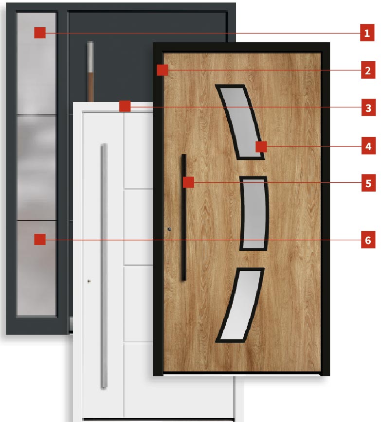 Unsere Haustüren sind auch mit einem oder zwei Seitenteilen erhältlich.