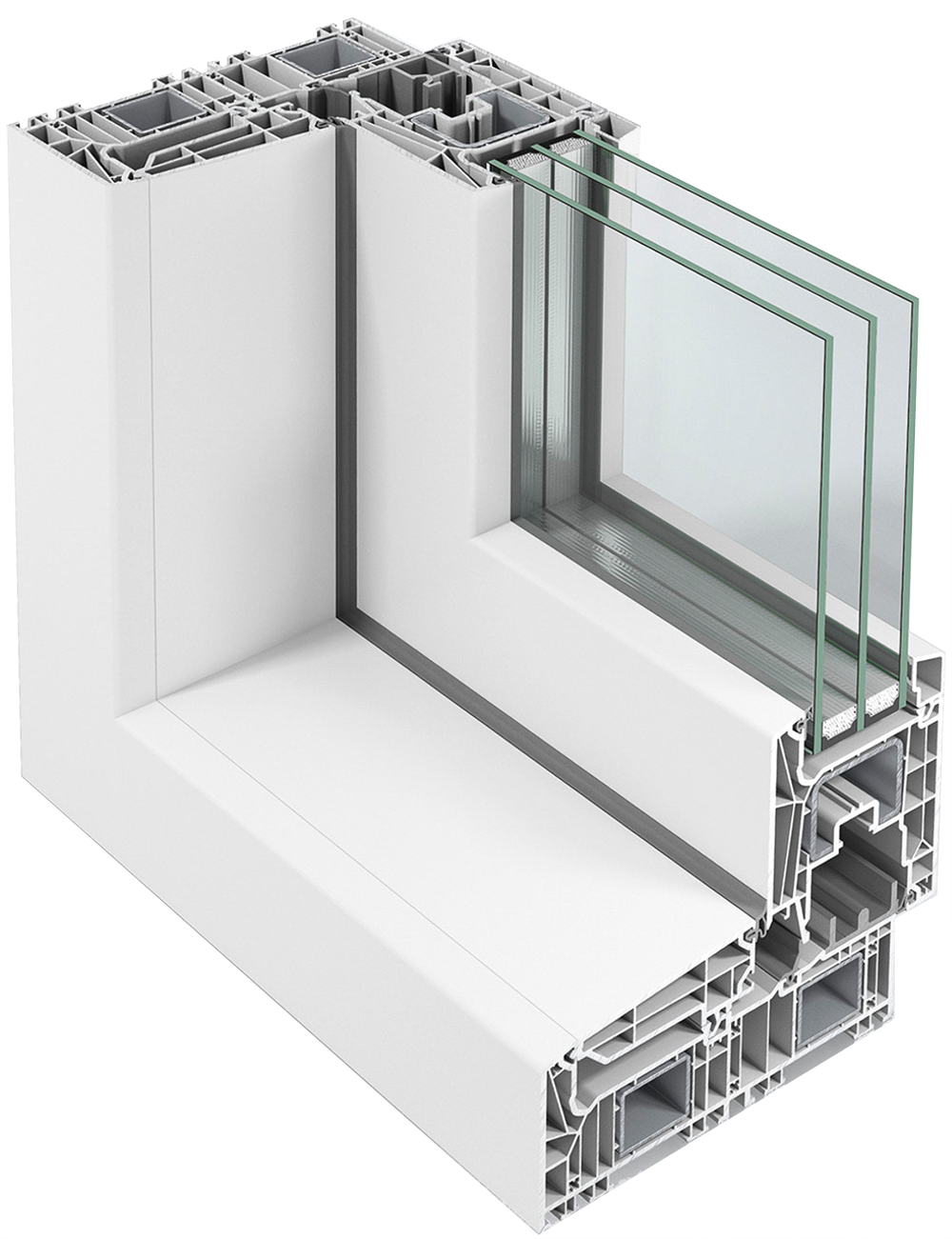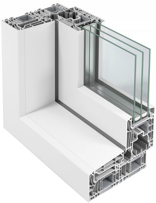 - Sehr gute Wärmedämmung (niedrige U-Werte).