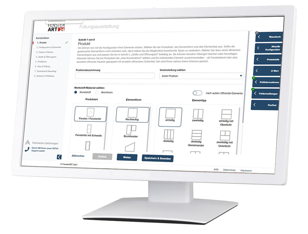 Als Partner von FENSTERART erhalten Sie Zugang zu unserem kostenlosen Online-Konfigurator. Weiterhin stellen wir Ihnen als Partner eine umfangreiche Auswahl an nützlichen Tools und Dokumenten zur Verfügung, die Sie in Ihrer täglichen Arbeit unterstützen.